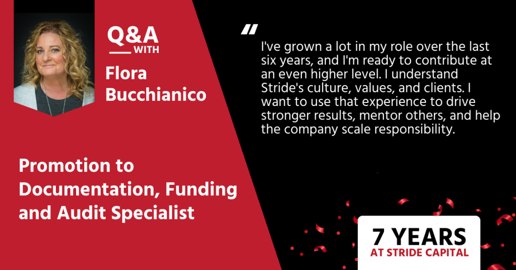 Flora Bucchianico has been an integral part of the Stride Capital team for 7 years and was recently promoted to Documentation, Funding and Audit Specialist. We sat down with her to discuss this milestone achievement, her new role, and her time at Stride.